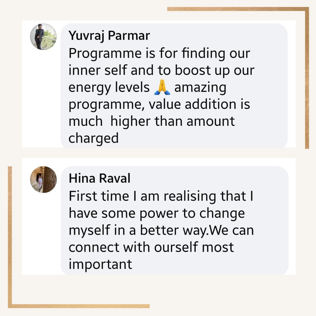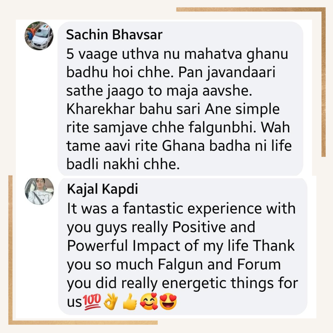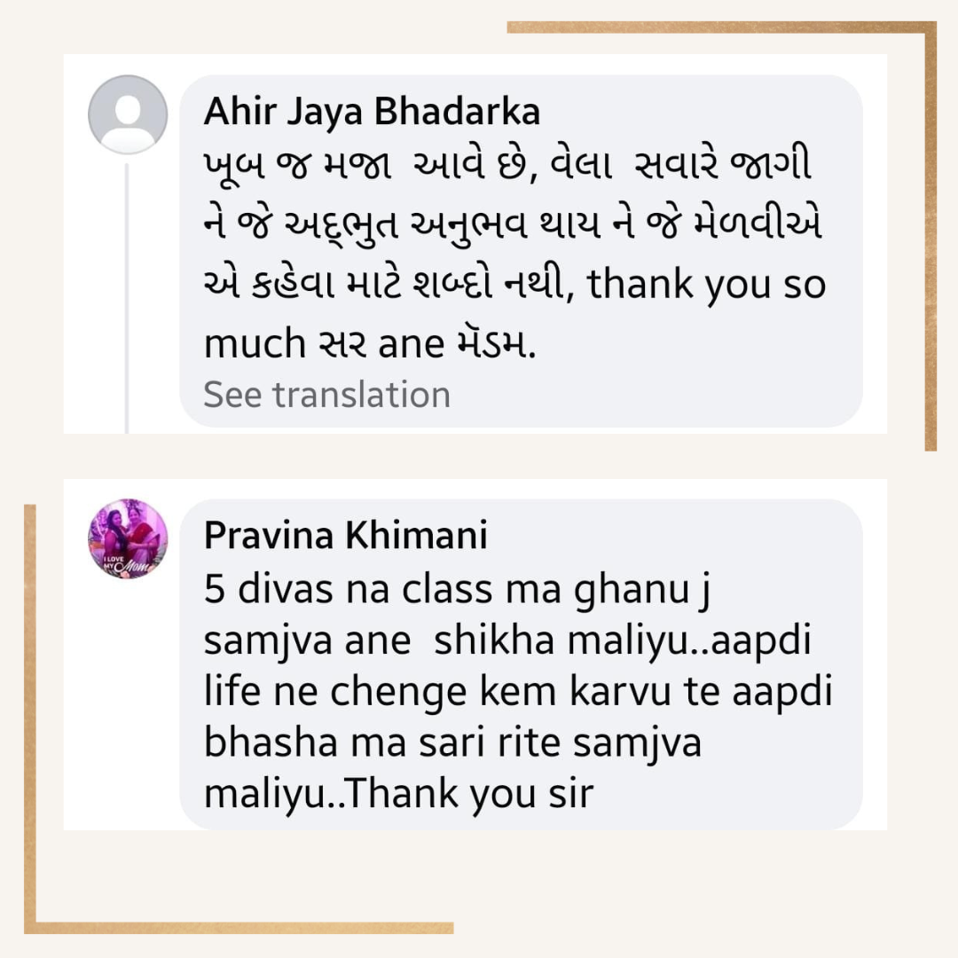 Don’t worry! This is very much part of the workshop. We will share practical tips that will help you to wake up early, and raise your energy, frequency, and vibration. (અમે તમારી સાથે practical techniques શેર કરીશું કઈ રીતે વહેલા ઉઠી શકાય)