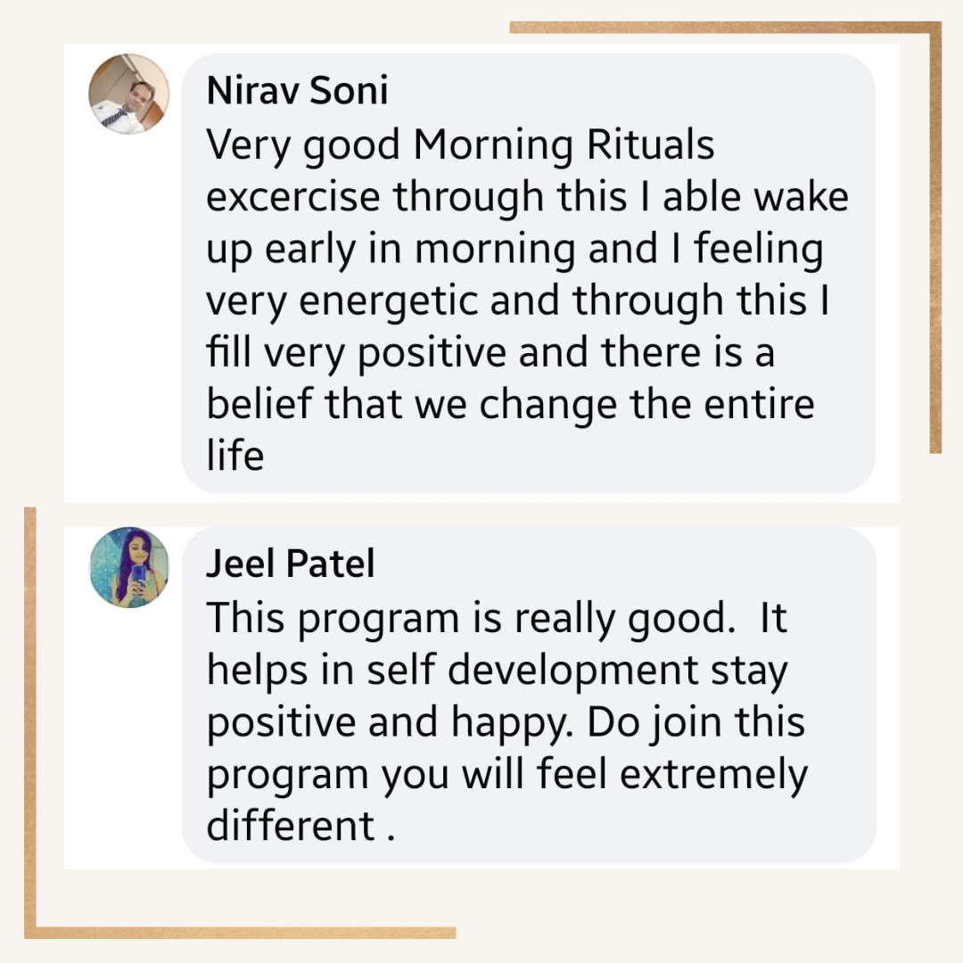 સરળ છતાં શક્તિશાળી સવારની વિધિઓ શીખો અને 100% આત્મવિશ્વાસ, ઉર્જા, ઉત્પાદકતા, સુખ અને સ્વ-ઉપચાર શક્તિઓને અનલોક કરો